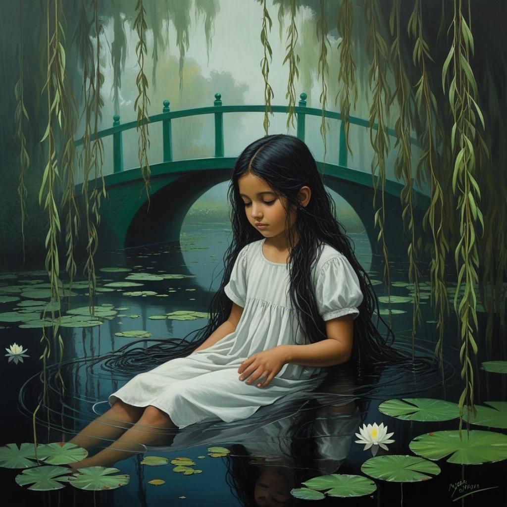 Seven years living in the heart of Europe, and Amalia had never managed to make this visit happen. It wasn’t until the spring of 2025 that she found herself standing before Monet’s pond in Giverny. The garden seemed to dissolve into a wet symphony of light and silence. The wisteria hung like lilac tears, swaying in the warm air, so close to the water that their reflections appeared to touch the surface. The weeping willows draped themselves over the pond, their hair of a thousand shades flowing, mourning. They leaned toward the water, heavy, almost human. In that fractured mirror of lily pads and branches, as Amalia crossed the green-painted wooden bridge her throat closed like a trap. She couldn’t breathe. The air thickened, an invisible pressure against her chest. First came the buzzing; then, the heat rising through her body. The wisteria blurred, becoming a smear of fresh, hazy paint. The willows seemed to lean closer to her… too alive, too near.
